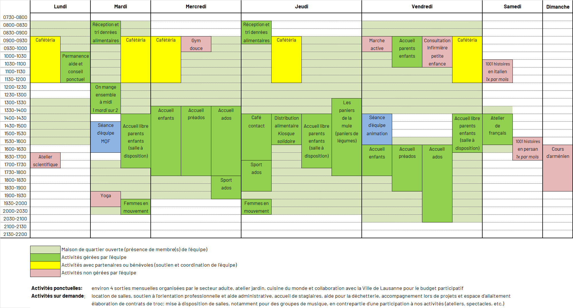 Les activités régulières se déroulent hors vacances scolaires et peuvent faire l'objet de modification selon les circonstances.